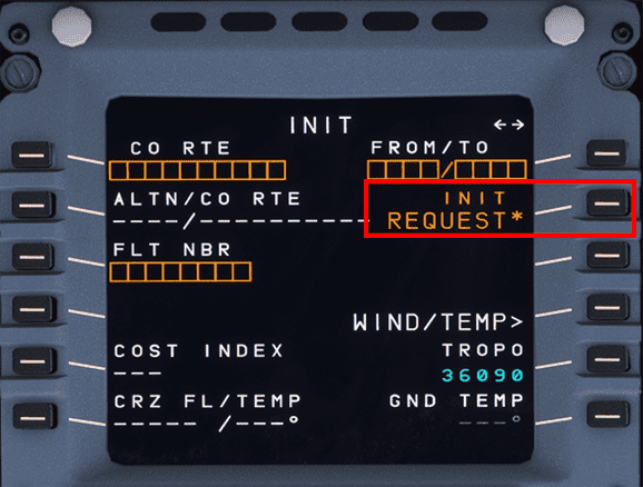 Do not select an arrival airport on the MSFS world menu or flight planner. Doing this "initializes" the FROM/TO field when loading into your flight, removing the INIT REQ. option from the INIT A page.