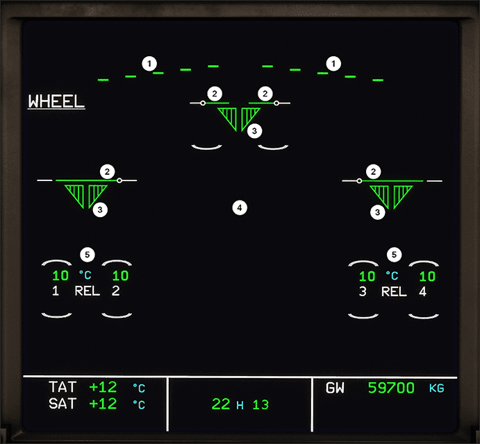 1 Spoilers and Speedbrakes Position Green triangle The spoiler is deflected by more than 2.5°.