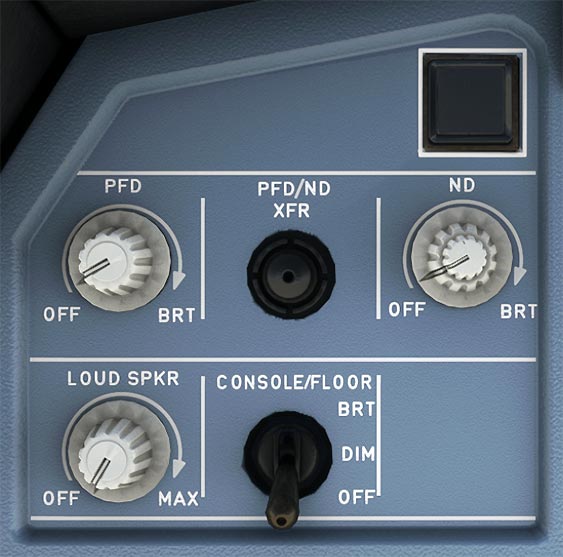 These knobs are used to turn the displays (PFD, ND) on and off, and also adjust their brightness.