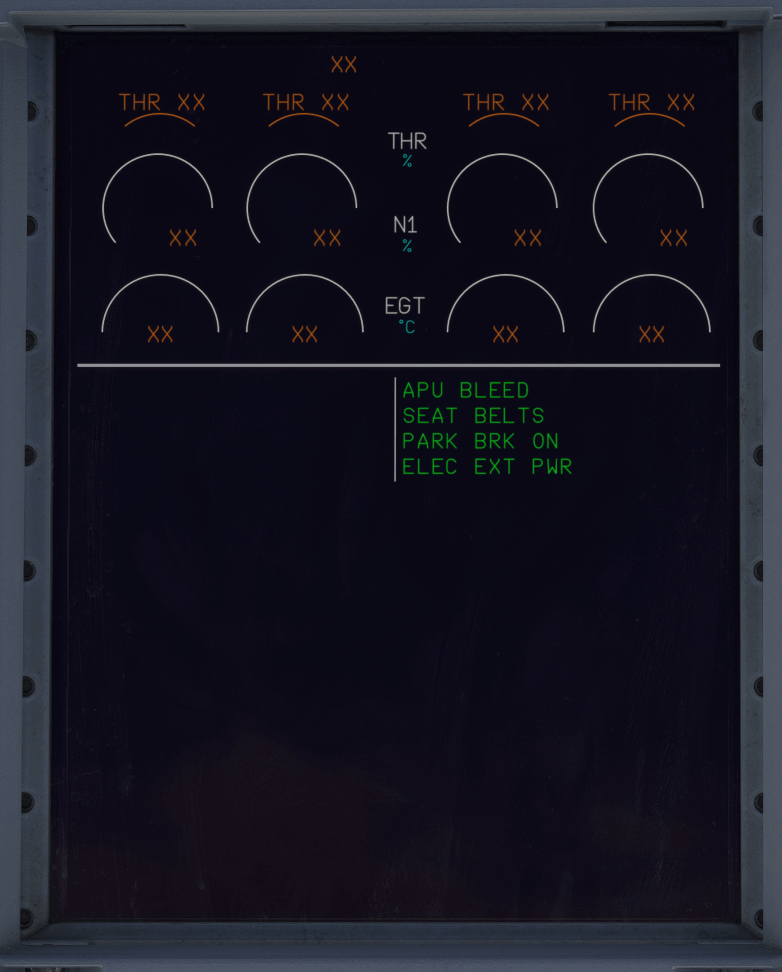 • The lower part displays the status of the Electronic Centralized Aircraft Monitoring (ECAM)
